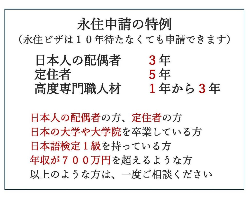 永住者許可申請においての注意点